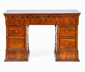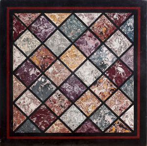 Grande tavolo lastronato e intarsiato. Inghilterra, XIX-XX secolo
