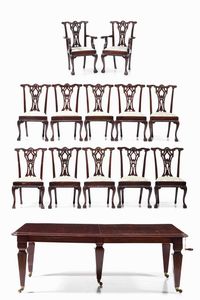 Tavolo allungabile con dieci sedie e due poltrone in mogano. Inghilterra, XIX se [..]