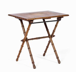 Lotto composto da tavolo rettangolare e sgabello in finto bambł