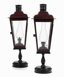 Coppia di lanterne. Legno e metallo dipinto. XIX-XX secolo