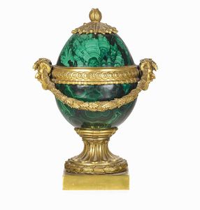 Uovo. Malachite e bronzo dorato e cesellato. XIX secolo