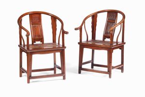Coppia di poltrone in legno con dettaglio intagliato sullo schienale. Cina, Dinastia [..]