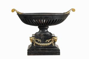 Vasca biansata in ferro fuso, patinato e bronzo dorato. XIX-XX secolo
