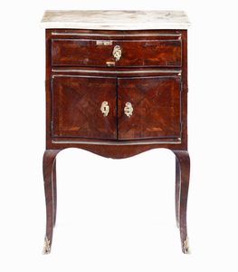 Comodino lastronato in bois de rose. Genova, XVIII secolo