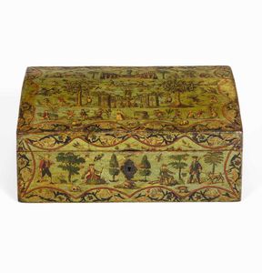 Cofanetto in legno laccato e decorato ad arte povera. Arte veneta, XVIII secolo