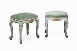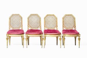 Grippo di otto sedie in legno laccato. XVIII-XIX secolo