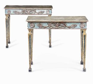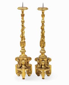 Coppia di grandi torciere in legno intagliato e dorato. Arte barocca del XVIII s [..]