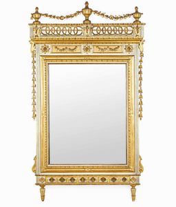 Specchiera in legno laccato e dorato. Fine XVIII - inizio XIX secolo