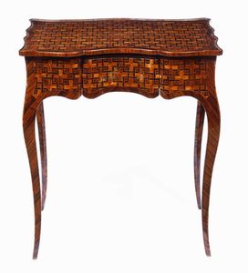 Tavolo lastronato e intarsiato a motivi geometrici, XVIII secolo