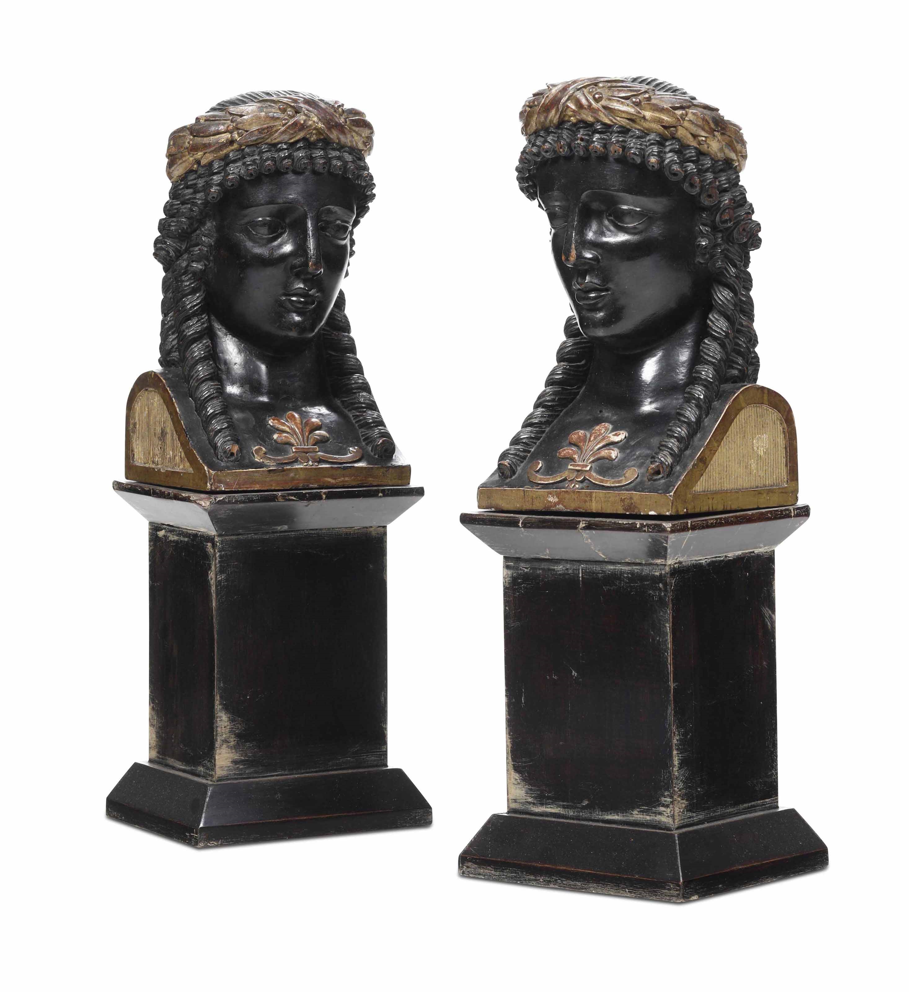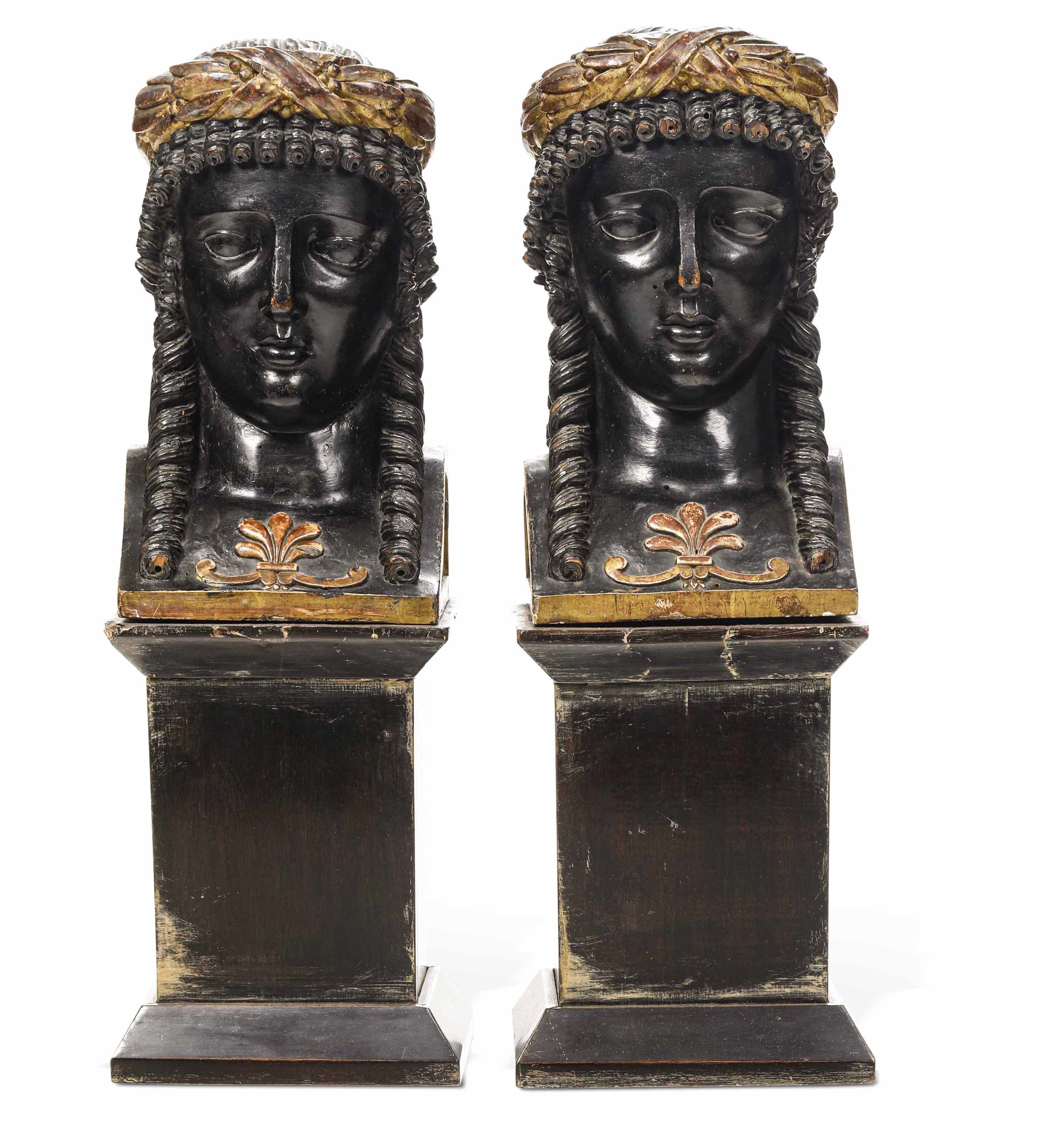 Due teste femminili. Legno intagliato, dorato ed ebanizzato. Scultore neoclassico [..]