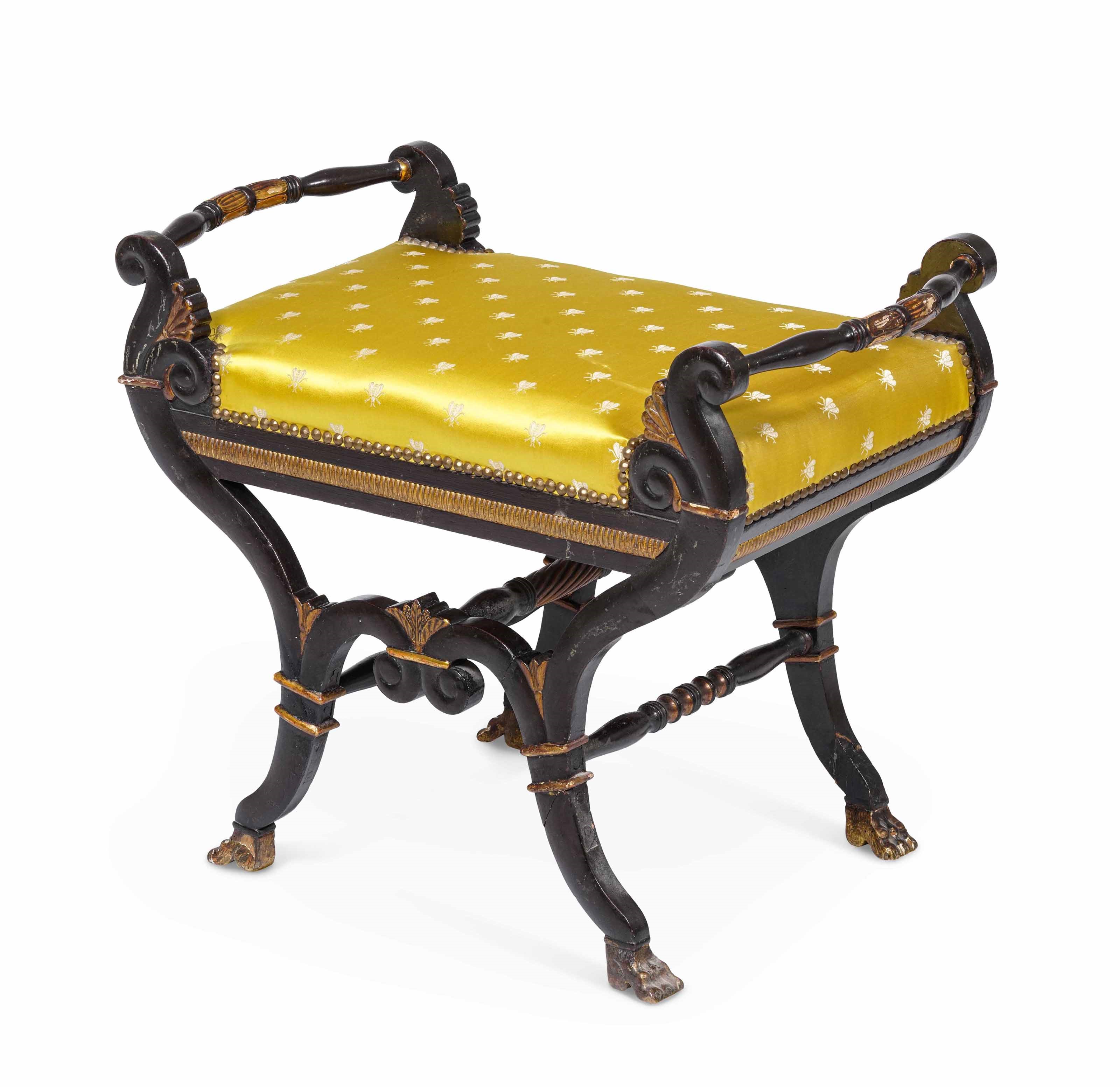 Faldistorio in legno intagliato ed ebanizzato, in stile Carlo X