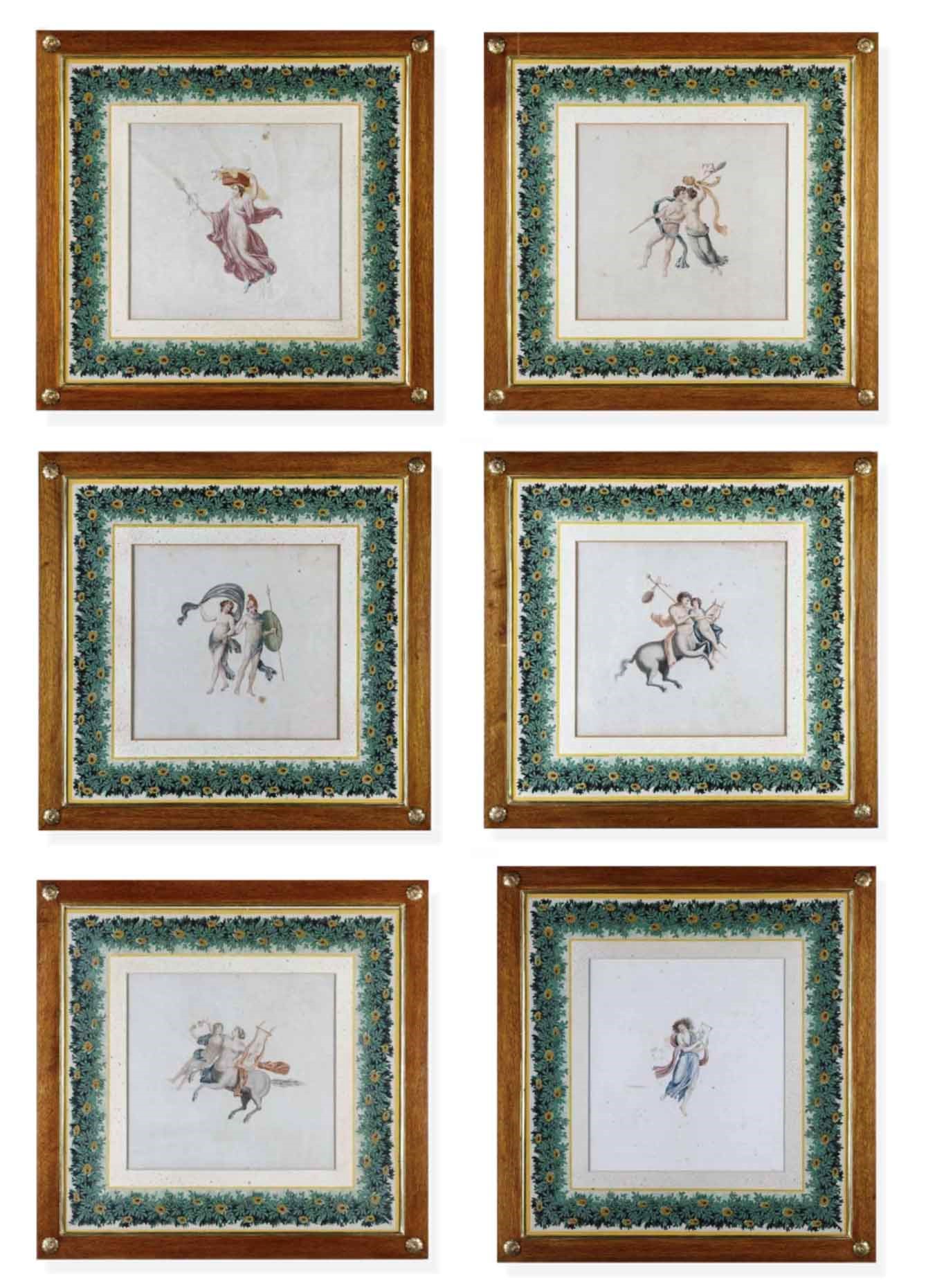 Lotto di sei incisioni acquerellate. XIX secolo, probabile scuola di Raffaele Gi [..]