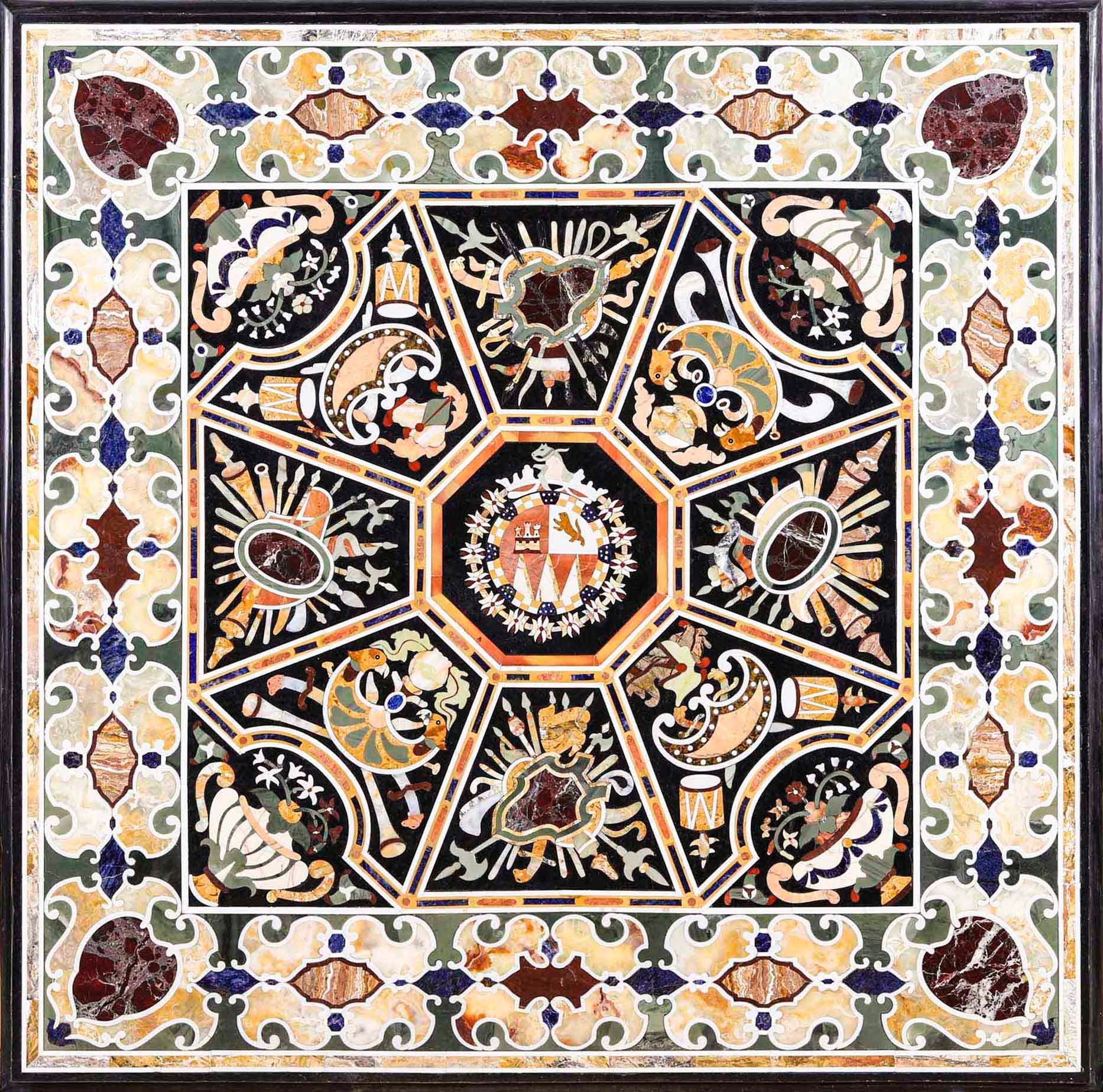 Piano con commesso di marmi e pietre dure. Arte italiana del XX secolo