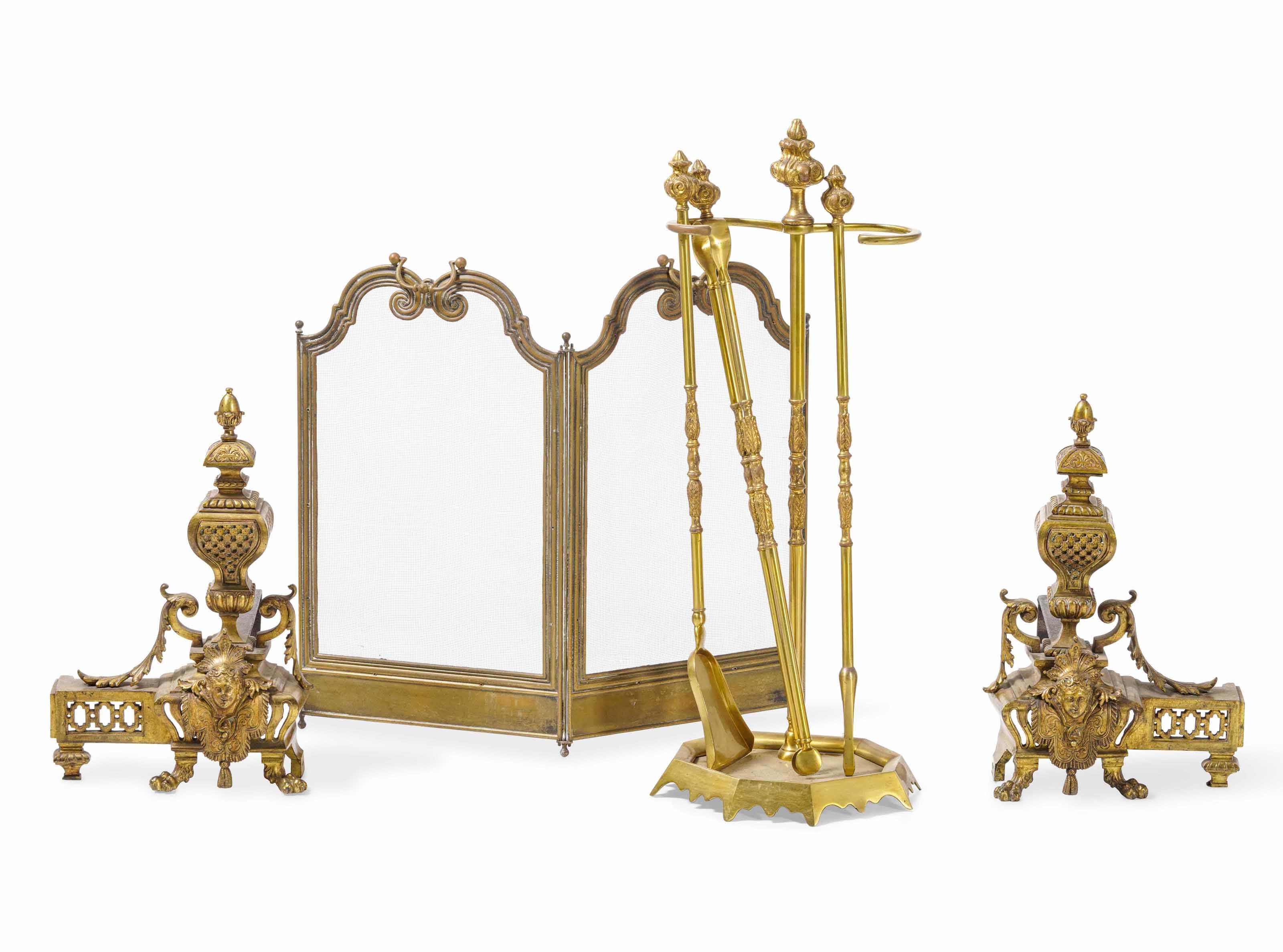 Set da camino in bronzo, XIX secolo