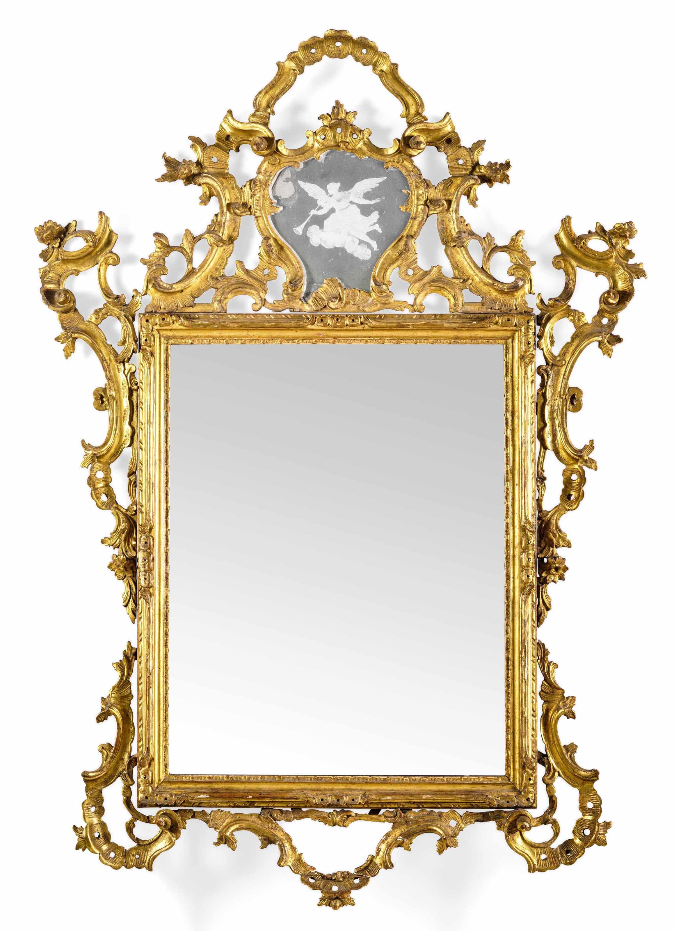 Specchiera Luigi XIV in legno intagliato e dorato. Veneto, XVIII secolo