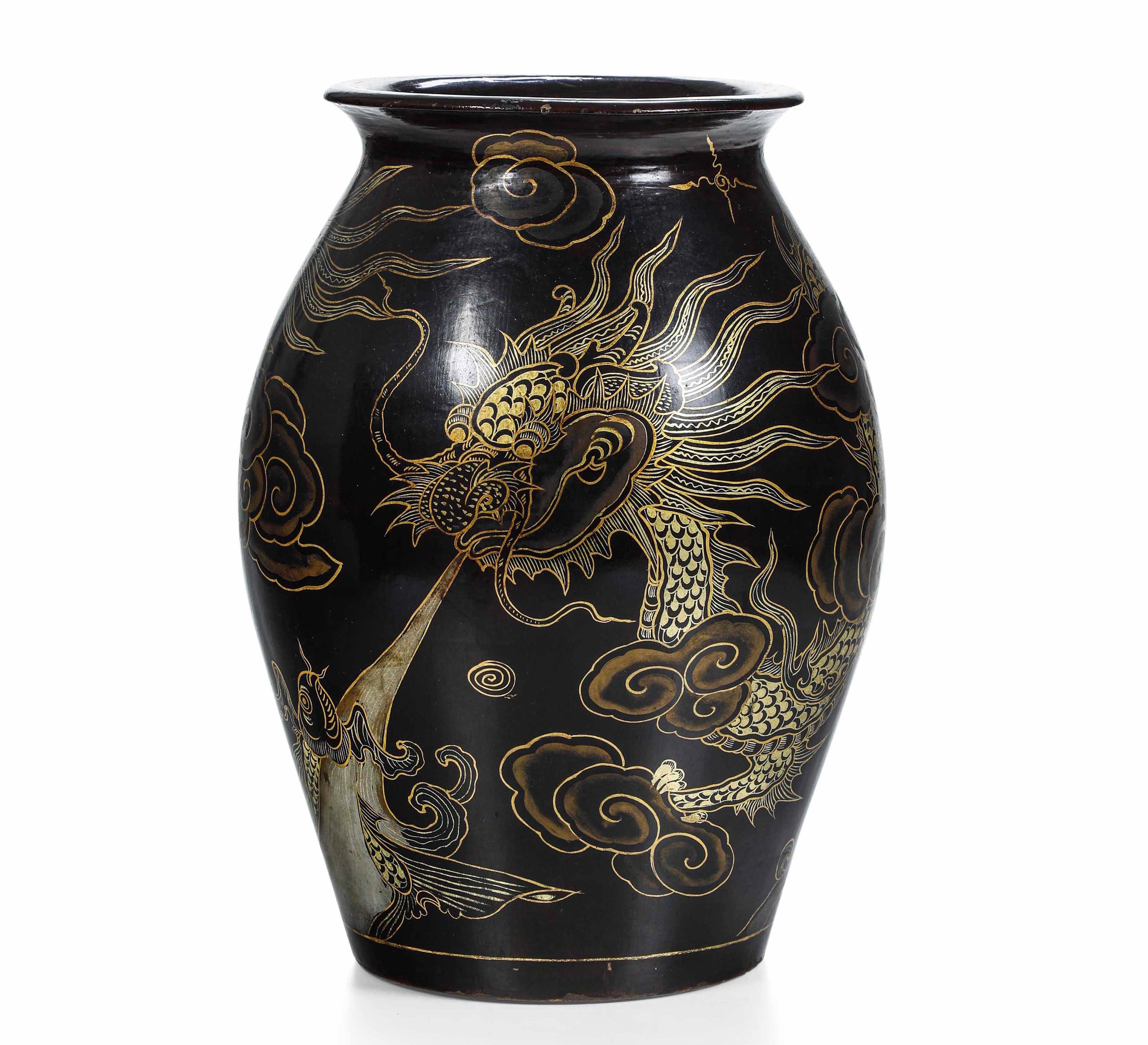 Vaso in legno laccato con figura di drago lumeggiata in color oro, Giappone, XX [..]