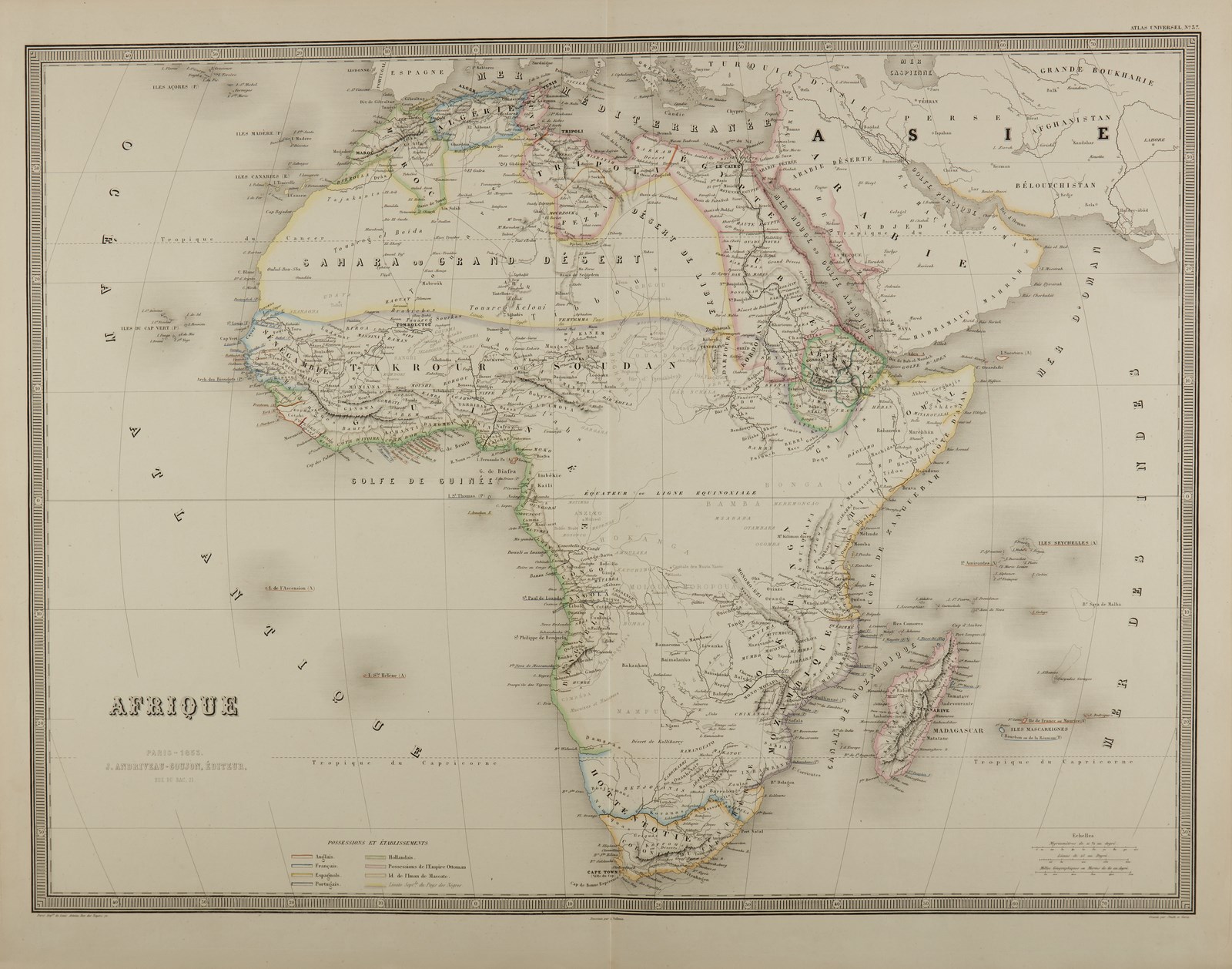 Afrique, paris-1853Atlas universel n.37incisione acquaforte acquarellata