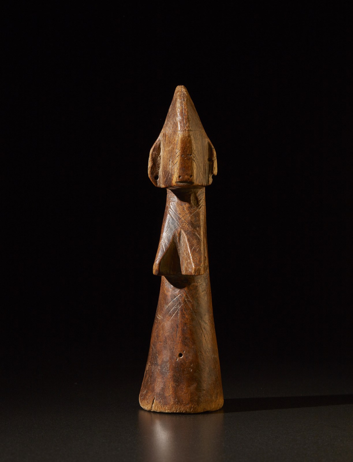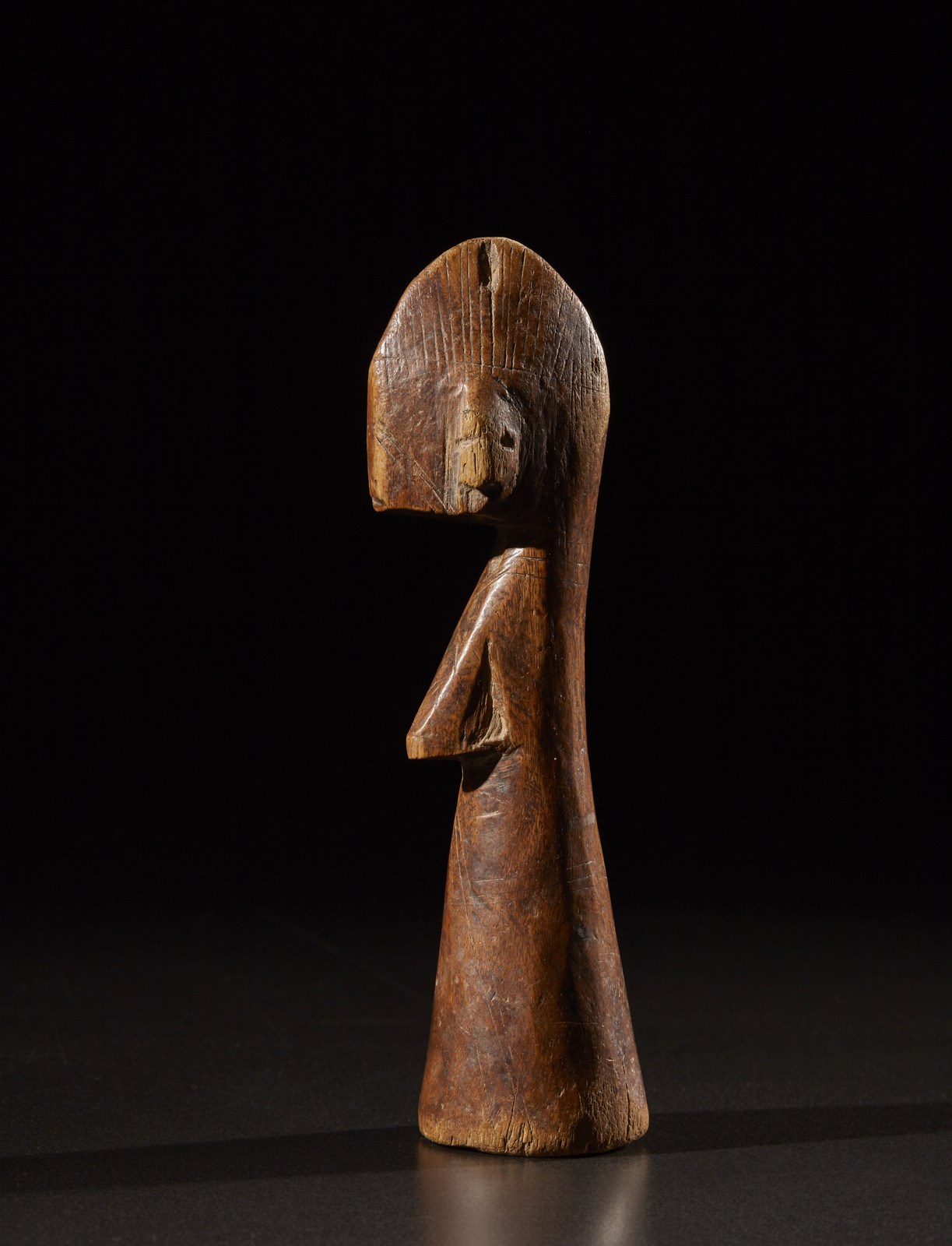 Bambola di fertilità.Legno duro a patina chiara.Segni d'uso.
