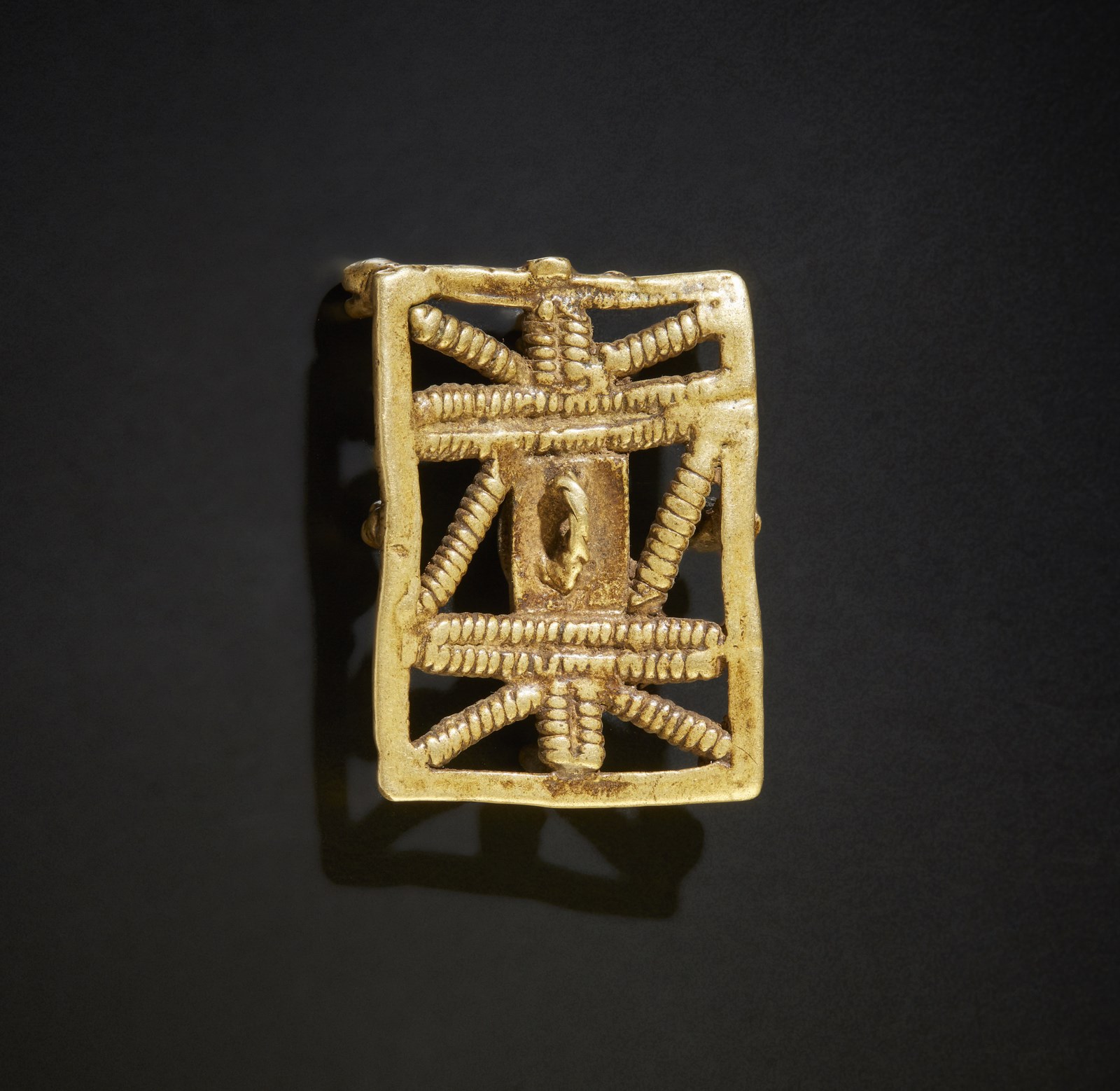Peso da oro Akan, con ogni probabilità in forma di letto, a cui era associato un proverbio della tradizione orale.