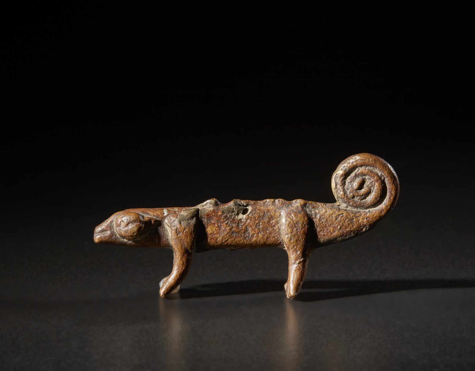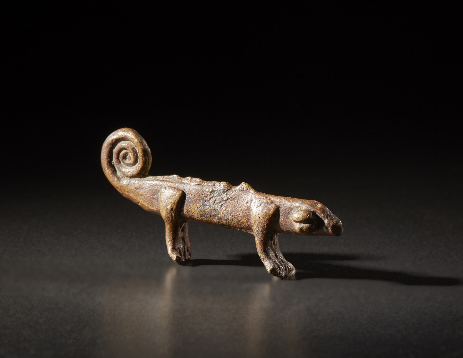 Piccola scultura a forma di camaleonte.Bronzo.Segni d'uso.
