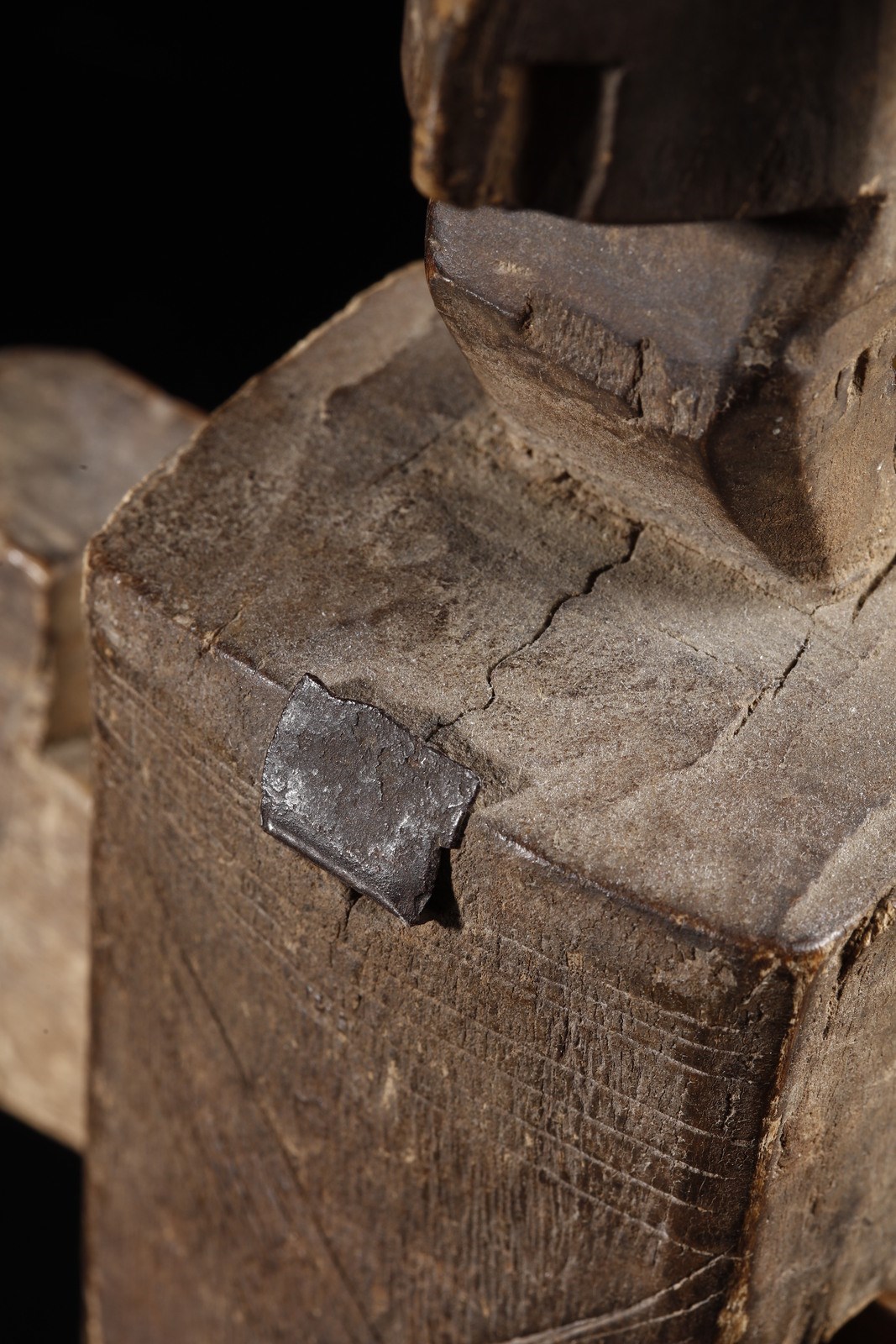 Serratura per porta di granaio.Legno duro a patina naturale.Segni d'uso.Con base [..]