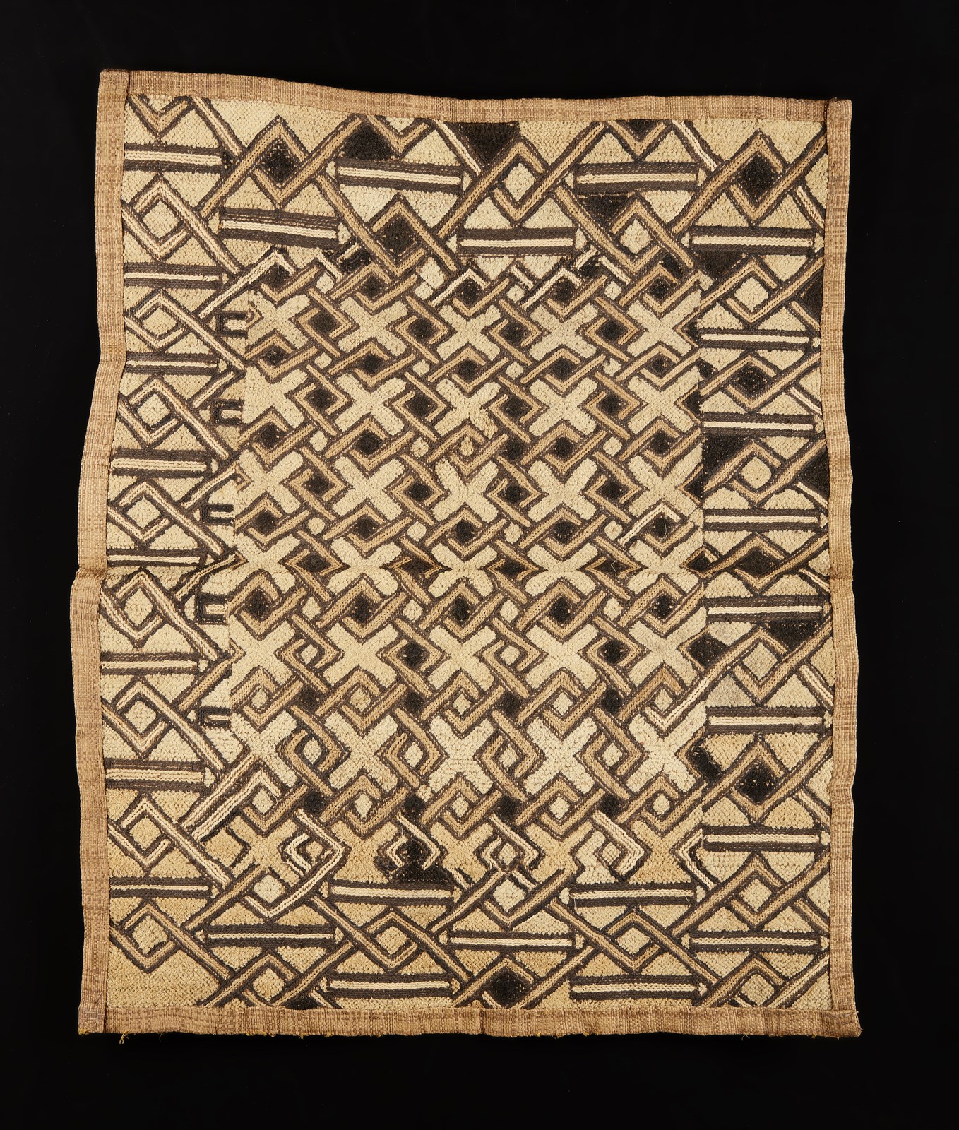 Tessuto rafia o velluto del Kasai.Rafia di palma da cocco e pigmenti.