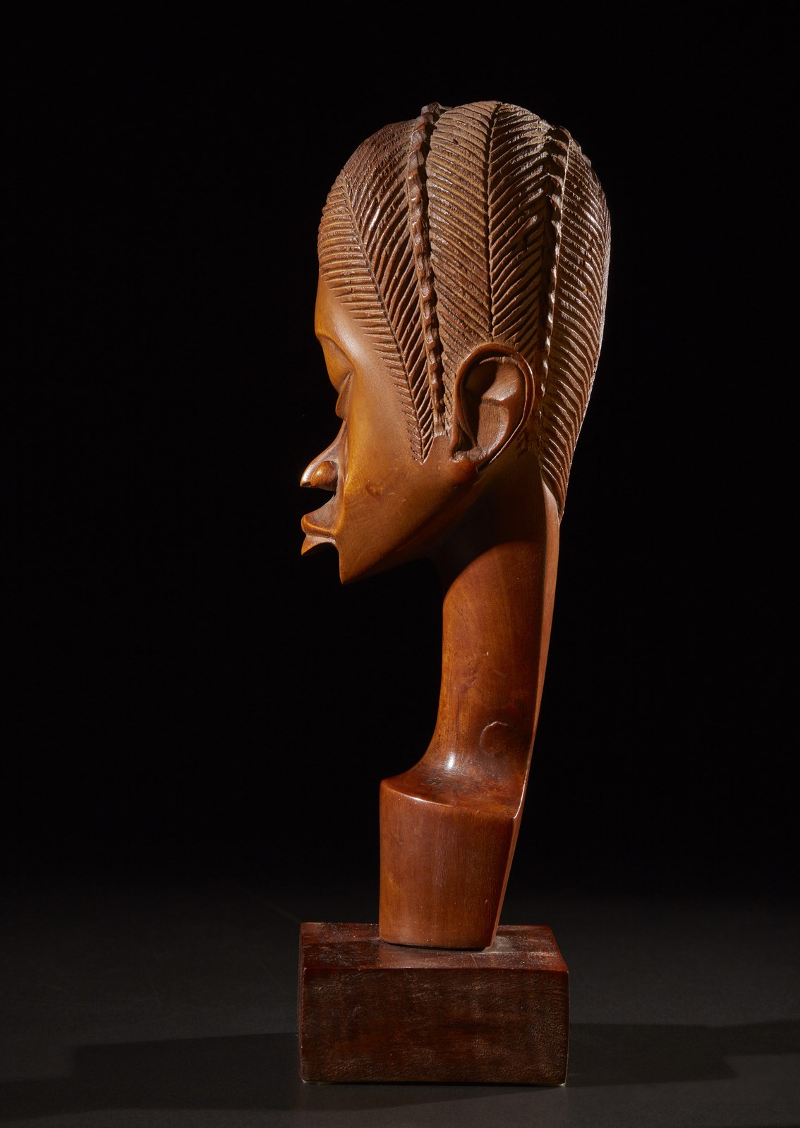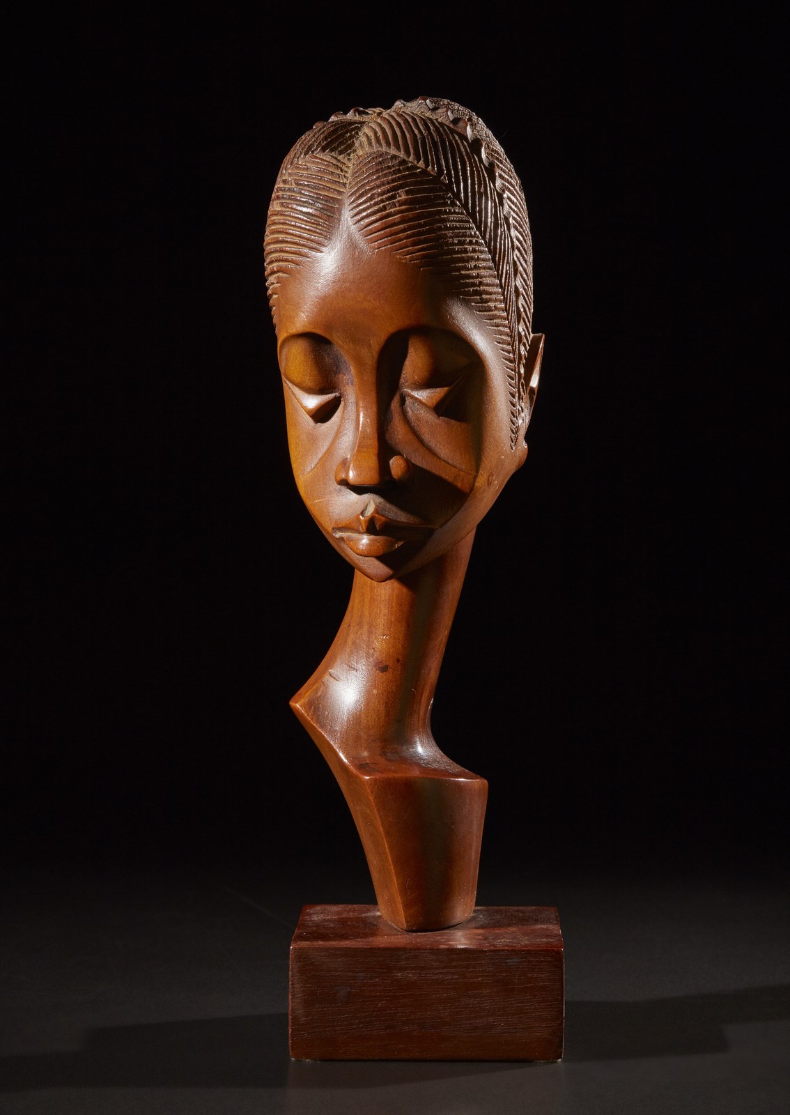 Firmata ''Diansivika'' lungo il collo, questa scultura in legno duro di testa femminile con espressione corrucciata, bocca imbronciata, profonde occhiaie ed occhi triangolari riesce sorprendentemente a coniugare la grande lezione espressiva dell arte africana classica con accenni stilistici di Dec̣ e tardo futurismo creando un risultato estetico originale ed accattivante.
