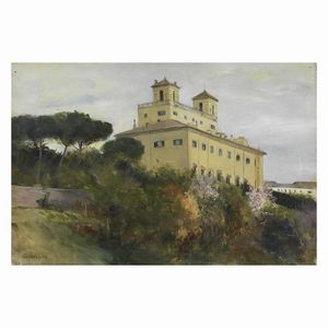 Scuola del sec. XIX VILLA MEDICI AL PINCIO olio su tela, cm 22,5x33,5, senza cornice indistintamente firmato in [..]