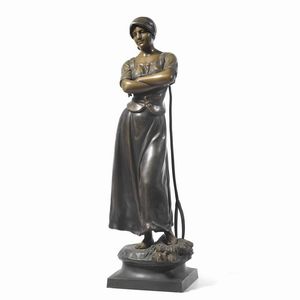 A.J. Scotte (1885-1905) CONTADINA metallo patinato, con base cm 60 firmato, timbro della fonderia, iscritto Copyright [..]
