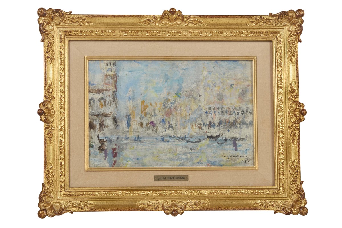 Luigi Mantovani (Milano 1880 - Milano 1957) VENEZIA olio su tela, cm 20x30 firmato e iscritto Venezia in basso a destra retro: timbri Rag. Mario Stangalino