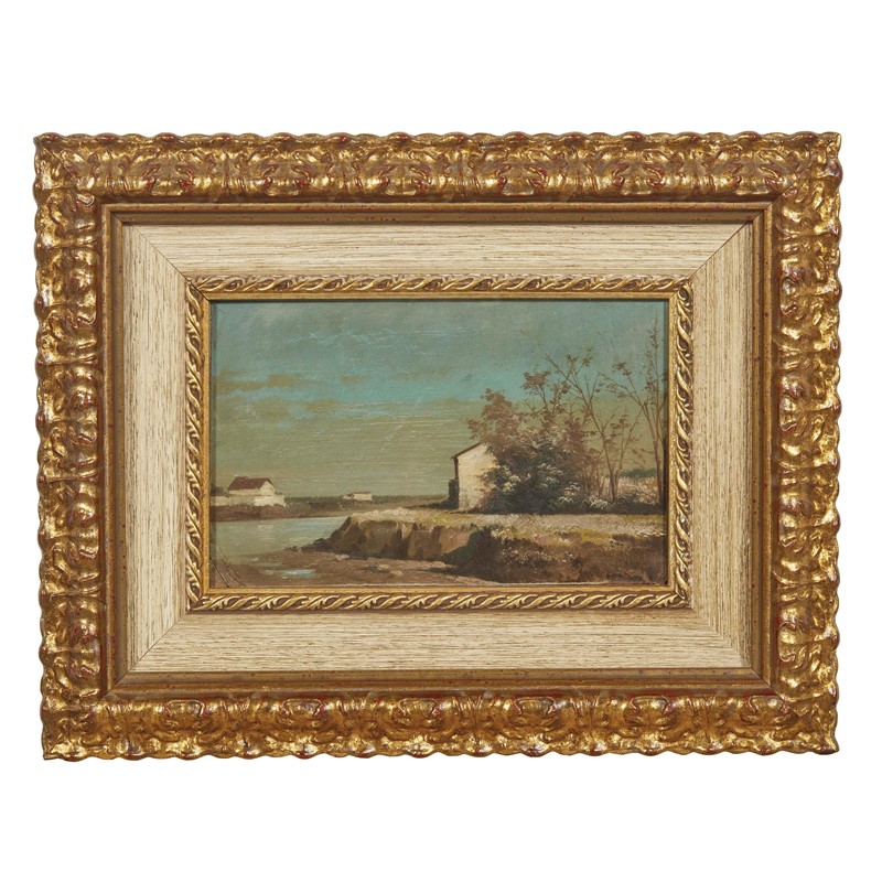 Venetian school, 19th century LAKE LANDSCAPE RIVER LANDSCAPE a pair of oil paintings on panel, 11.5x18.5 cm the first with apocryphal signature G. Ciardi lower right