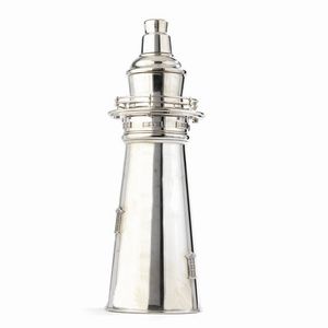 SHAKER, FIRENZE, SECOLO XX, ARGENTIERE BELFIORE in argento sterling realizzato in forma di faro, alt. cm 37, g [..]