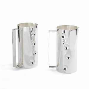 BRANDIMARTE, DODICI BICCHIERI DA ACQUA E DODICI CALICI DA VINO, FIRENZE, SECOLO XX in argento, alt. cm 5,5 e cm [..]