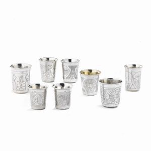 OTTO BICCHIERINI, RUSSIA SECOLO XIX e INIZI SECOLO XX in argento, due della città di Kiev, decorati da [..]