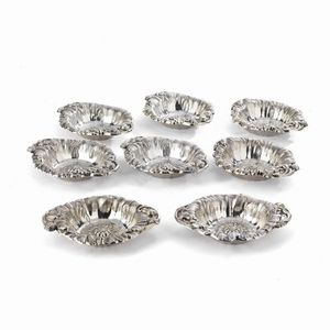 OTTO POSA CENERE, FIRENZE, SECOLO XX in argento sterling sbalzato realizzati come corolle di fiori e foglie, cm [..]