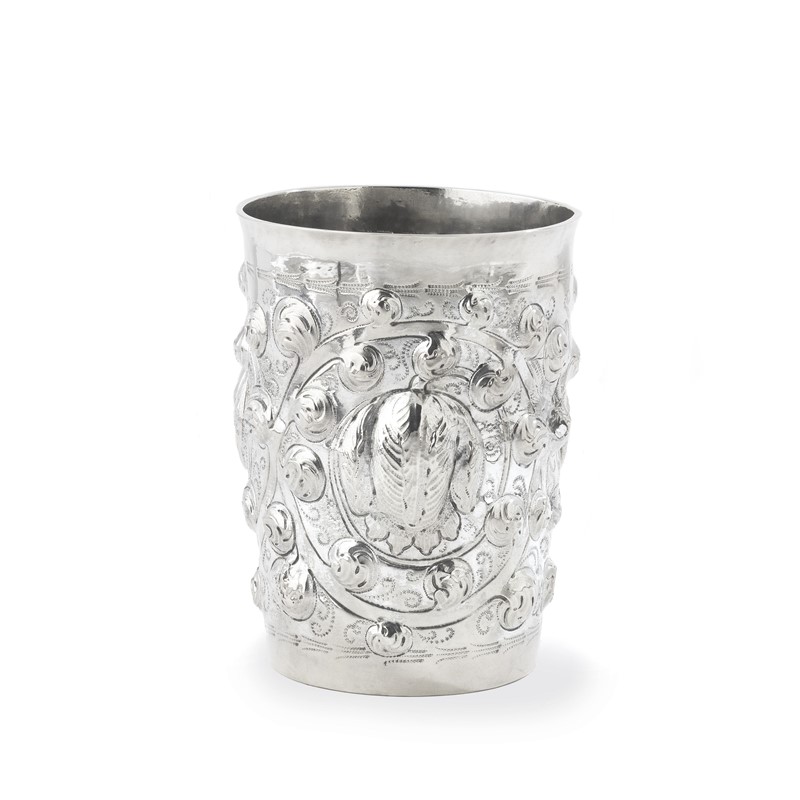 A SILVER GLASS WITH LID, BRESLAU (PRUSSIA) 18TH CENTURY