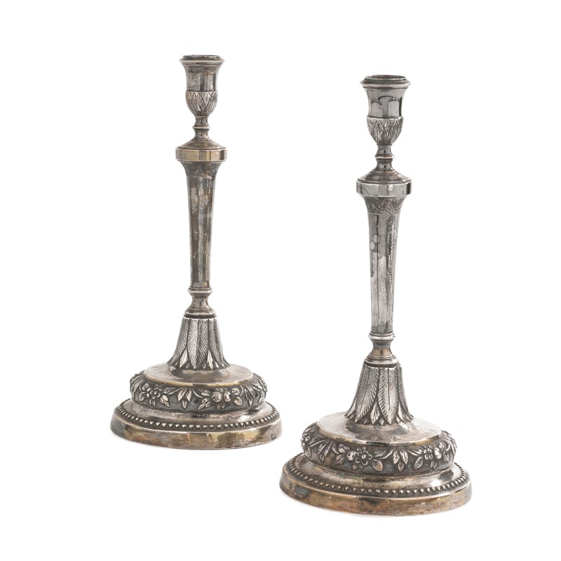 PAIR OF SILVER CANDLESTICKS, CENTRAL ITALY, 19TH CENTURY