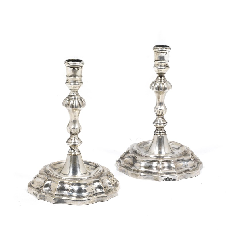 PAIR OF SILVER CANDLESTICKS, PONTIFICAL STATE, 18TH CENTURY