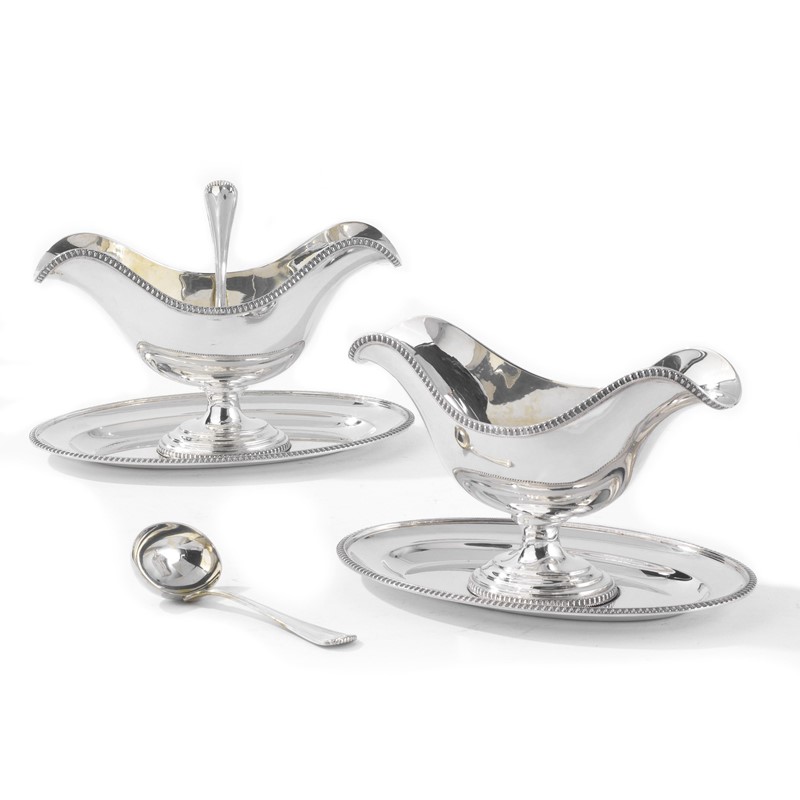 di forma a vavette con vassoietto, complete di due ramaioli, complessivi g 1412