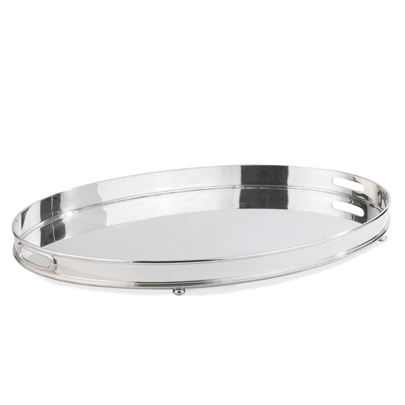 in argento, di forma ovale poggiante su quattro piedini a sfera schiacciata, cm 52x38, g 2340