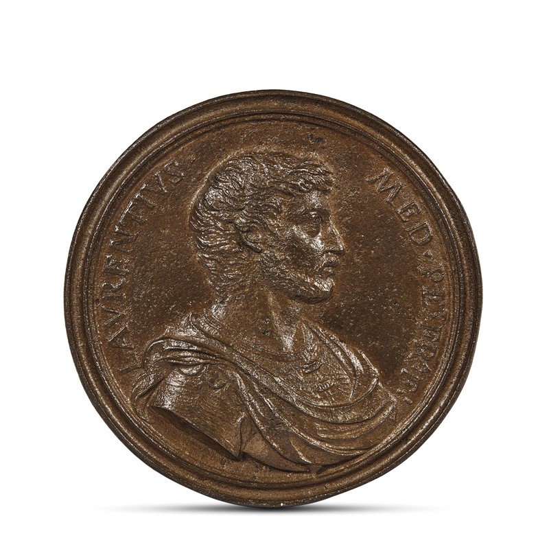 Fronte. Busto a destra con mantello drappeggiato. Iscrizione LAVRENTINVS.MED.PE.FR.F.