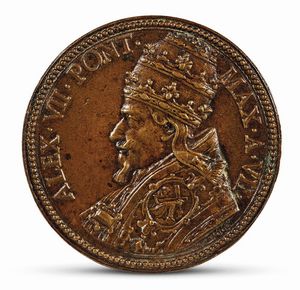 Gioacchino Francesco Travani (not. 1634-1675) ALESSANDRO VII, 1662 medaglia in bronzo, diam. cm 6,8. Fronte. Busto [..]
