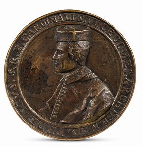 Lombardia, secolo XVII FEDERICO VISCONTI medaglia in bronzo, diam. cm 8. Fronte. Busto a sinistra berretta e mantellina. [..]