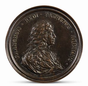 Massimiliano Soldani (Montevarchi 1656-1740) FRANCESCO REDI, 1684 medaglia uniface in bronzo, diam. cm 8,8. Fronte. [..]
