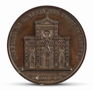 L. Gori FACCIATA SANTA MARIA DEL FIORE, 1886 medaglia in bronzo, diam. cm 5,5 Fronte. Prospetto anteriore della [..]
