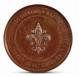 I. Vagnetti CONGRESSO GIURIDICO FIRENZE, 1891 medaglia in bronzo, diam. cm 4,1. Fronte. Tra rami d'alloro e quercia [..]