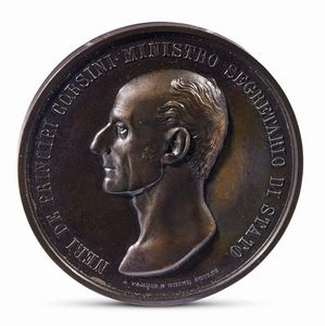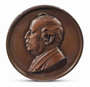 M. Giampaoli, I. Farnesi FRANCESCO CARRARA, 1876 Medaglia in bronzo, diam. cm 5. Fronte. Busto a sinistra. Sotto [..]