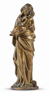 Italia settentrionale, secolo XVII MADONNA COL BAMBINO rilievo d’applique in bronzo dorato, alt. cm 13,4 [..]