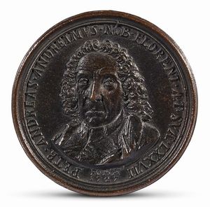 Angelo Sarti (attivo 1727-1742) PIETRO ANDREA ANDREINI, 1727 medaglia in bronzo, diam. cm 6,6. Fronte. Busto quasi [..]