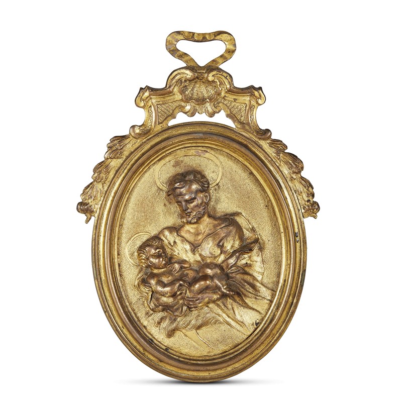 Roman, second half 18th century, Sain Joseph with Child, gilt bronze